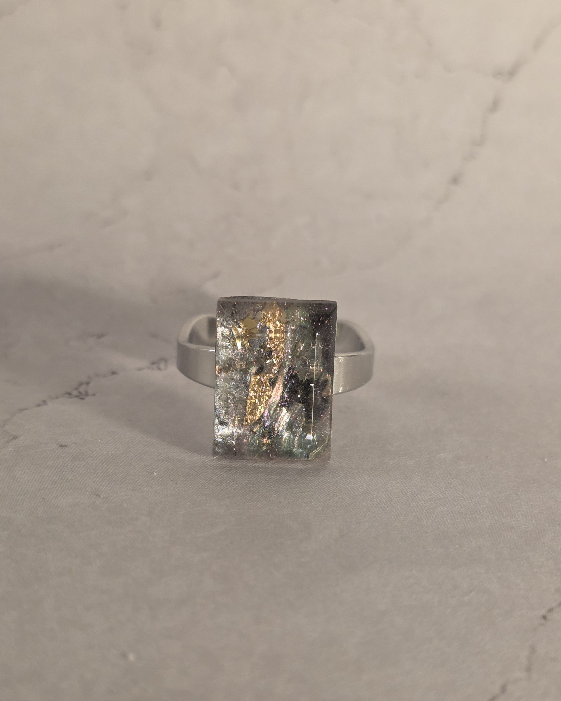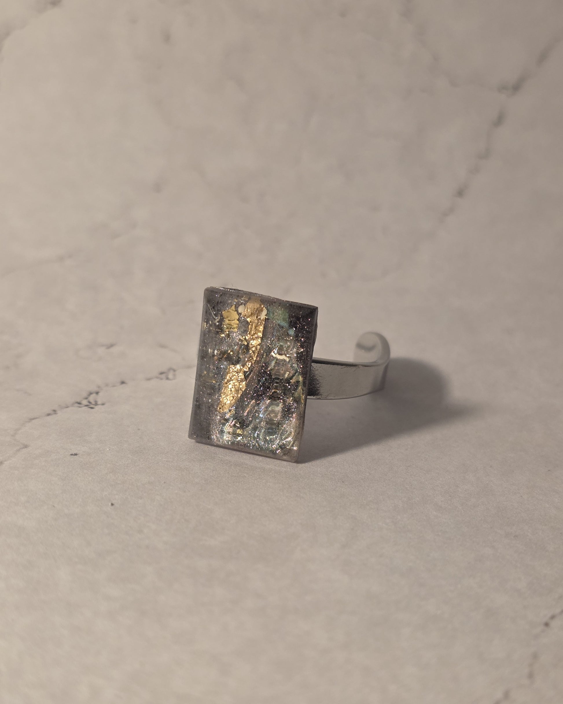 One-of-a-kind handcrafted resin charm on stainless steel adjustable band. Each ring is individually handmade, ensuring no two are exactly alike. Lightweight, durable, and versatile, perfect for layering or wearing solo.