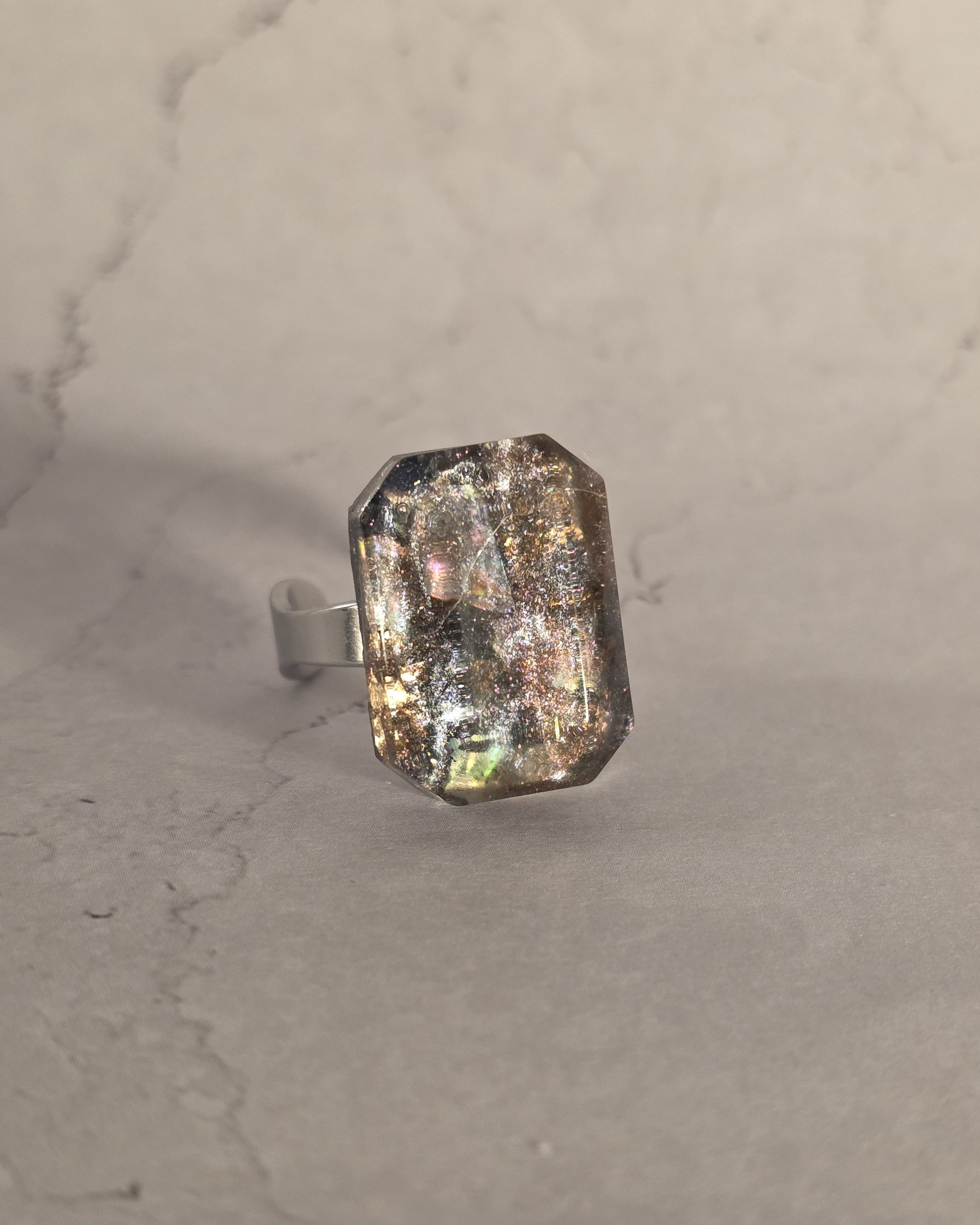 Handcrafted large chunky cabochon on stainless steel adjustable band. Each ring is individually handmade, ensuring no two are exactly alike. Lightweight, durable, and versatile, perfect for layering or wearing solo.