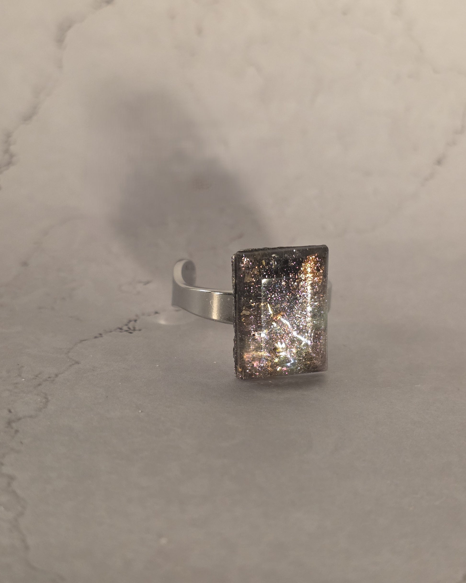 One-of-a-kind handcrafted resin charm on stainless steel adjustable band. Each ring is individually handmade, ensuring no two are exactly alike. Lightweight, durable, and versatile, perfect for layering or wearing solo.