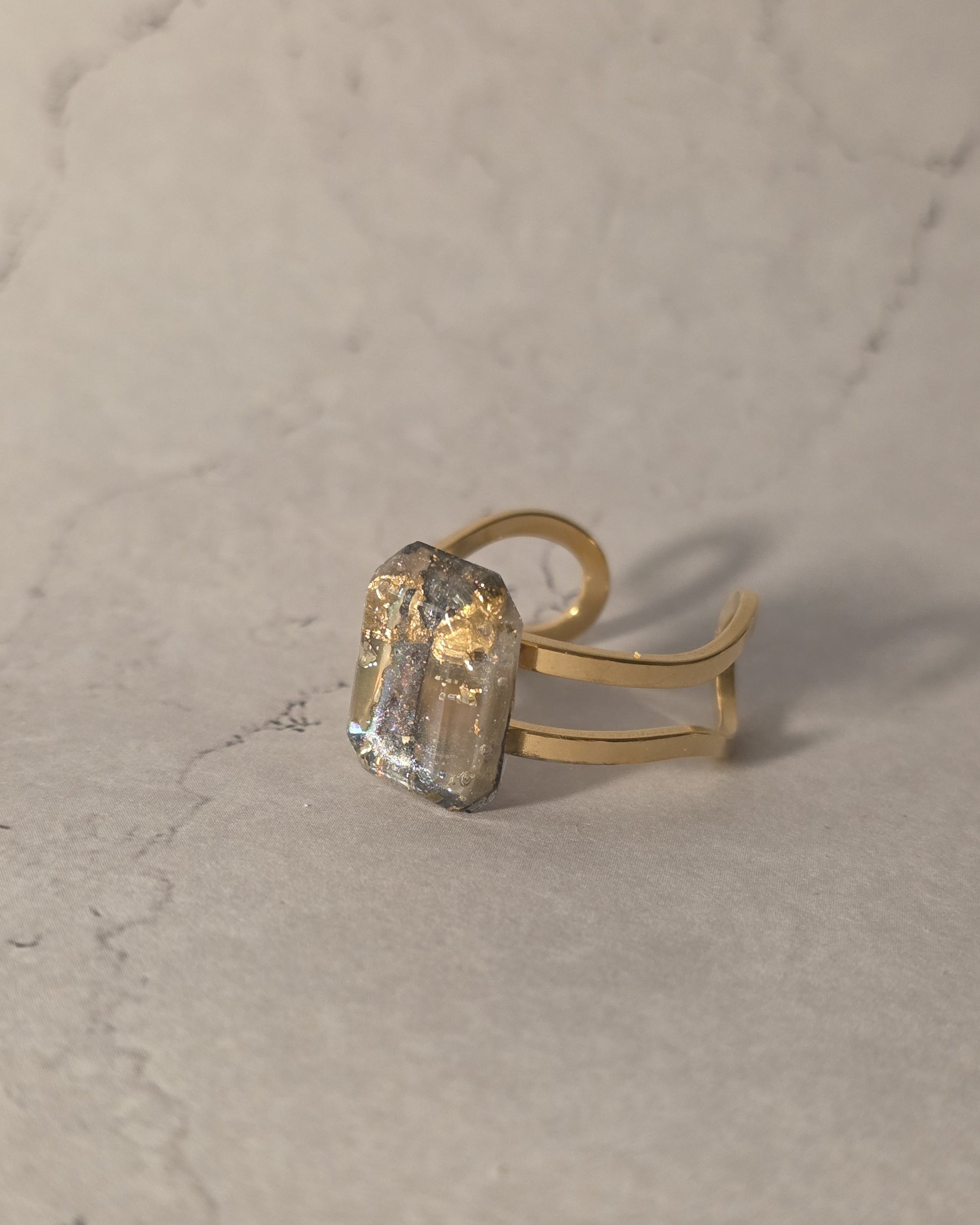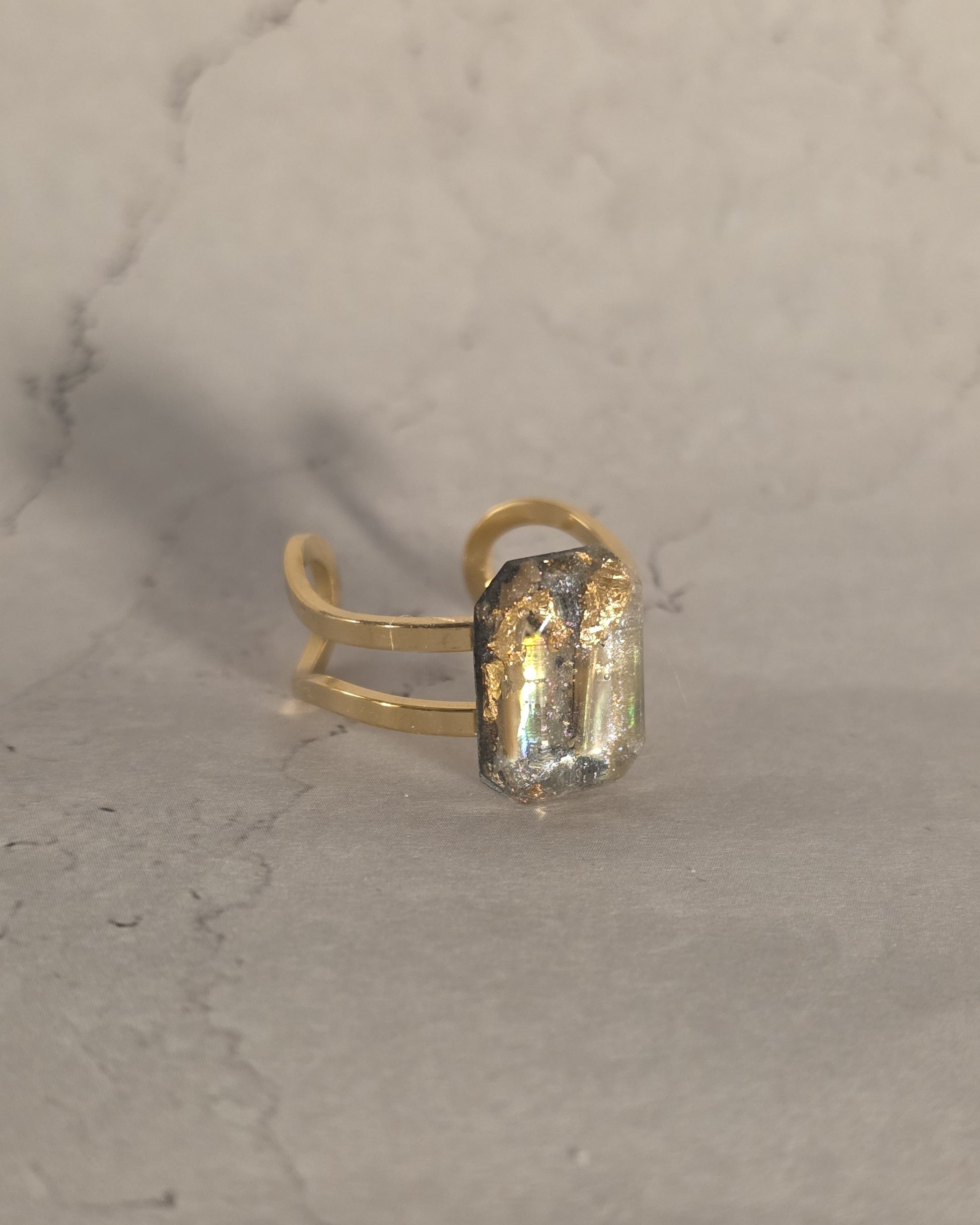 One-of-a-kind handcrafted resin cabochon on gold-plated stainless steel adjustable band. Each ring is individually handmade, ensuring no two are exactly alike. Lightweight, durable, and versatile, perfect for layering or wearing solo.
